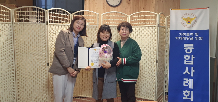 1021() 77회 경찰의 날의 맞이하여 본 상담센터의 K상담원이 경찰 업무에 협조한 공로로 아산 경찰서장의 감사장을 받았다.