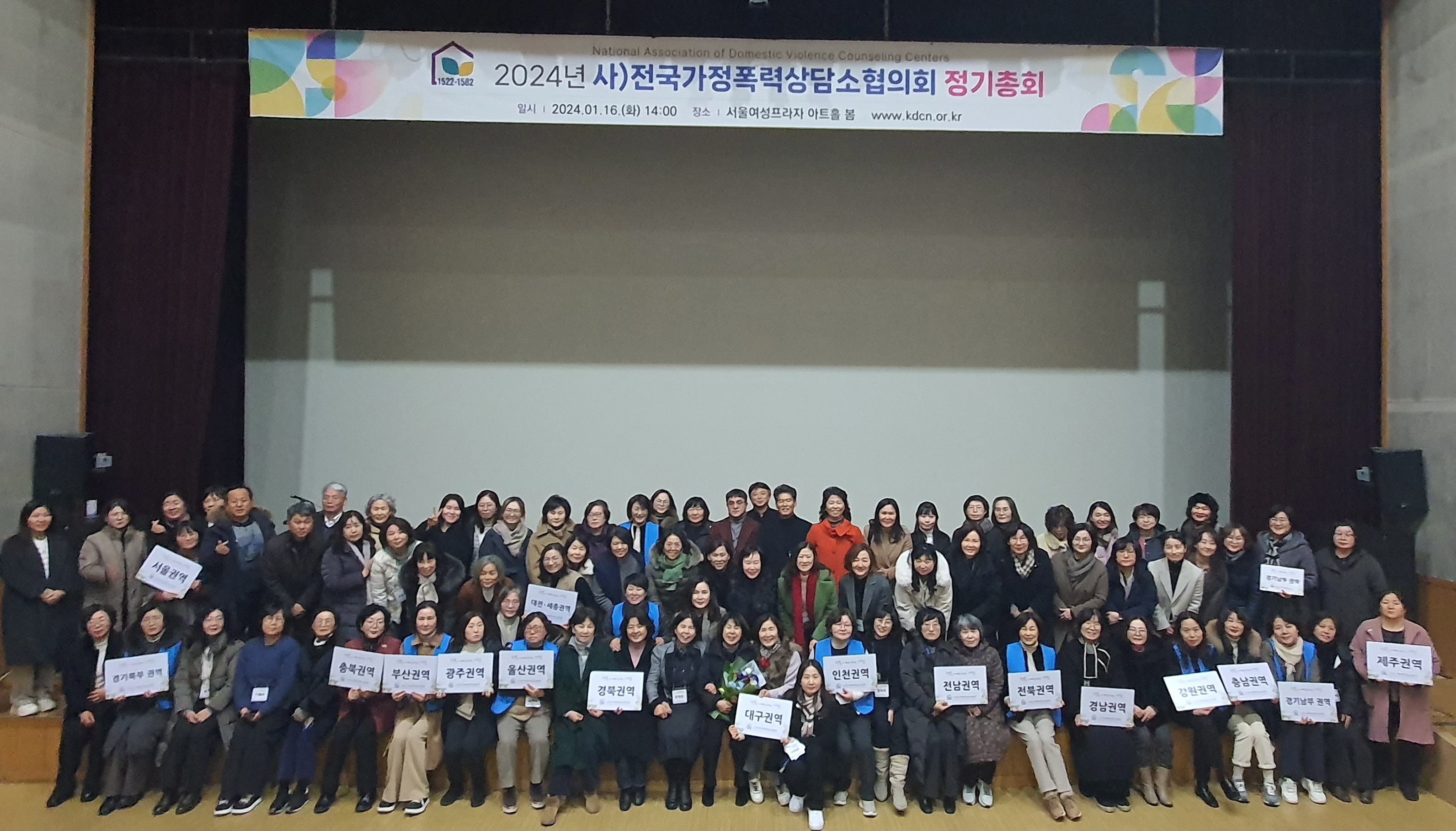 1월 16일(화) 오후 2시, 서울여성프라자 아트홀에서 전국가정폭력상담소협의회 정기총회가 있었다. 23년 사업보고 및 결산, 24년 사업계획 및 예산승인, 공로상 전달 및 권역대표인준 등의 회의가 있었다. 현안으로 인해 운영의 혼란을 겪고 있는 상담기관들의 고충을 나누고 정책 변화에 따라 탄력성 있게 지원 사업을 추진해 갈 방향을 모색하는 시간이 되었다.