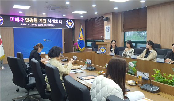 4월 25일(목) 오전 10시 아산경찰서 본관 2층에서 본 기관(아산가정성통합상담센터)과 아산경찰서 피해자보호팀·학대전담팀, 아산시청 아동복지팀, 아산시보건소 정신보건팀, 초록우산 어린이재단, 범죄피해자지원센터, 해뜰통합상담소가 모여 가정폭력 및 아동학대(방임) 피해아동 지원에 대해 논의하였다. 각 기관의 지원내용을 공유하고 협력하여 사례에 맞는 적절한 피해지원을 모색할 수 있었다