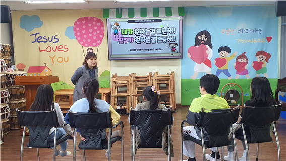 4월 25일(화) 14:00시, 생명샘 어깨동무학교에서 7세~13세 학생들을 대상으로 인성교육 및 성폭력 예방교육을 실시하였다. 서로의 경계를 지키고, 다름을 존중하며 내 감정을 솔직하게 이야기 하고, 친구의 마음을 공감하는 방법 등에 대해 교육 하였다. 더불어 학생들 사이에서 일어날 수 있는 성폭력에 대해 알아보며 서로의 몸을 소중히 여기고, 성폭력 상황에 대처하고, 예방하는 방법에 대해 교육하였다.
