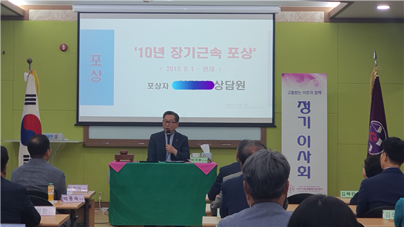 본 기관에서는 10년 이상 장기근속 상담원에게 포상금과 포상휴가를 수여하는 제도가 있어 올해 S상담원이 이에 해당하여 함께 축하하였다.