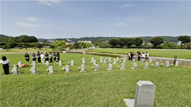 813() 오전 1030분 천안 국립 망향의 동산에서 충남여성복지시설협의회의 주관으로 일본군 위안부피해자 기림의 날 추모식이 있었다. 일본군 위안부피해자 추모비 및 묘역에 분향·헌화·묵념을 진행하였다. 피해자들의 명예와 존엄을 회복하기 위해 지속적으로 그들을 기리고 연대할 것을 다짐하였다.