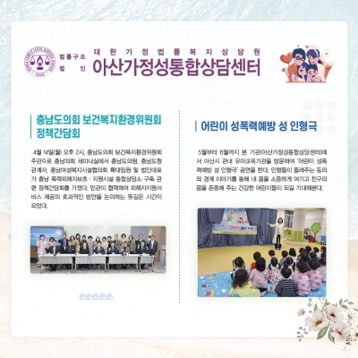 TEL 041-546-9191 / 9181 (가정∙성상담) / 041-546-6655 (법률상담)